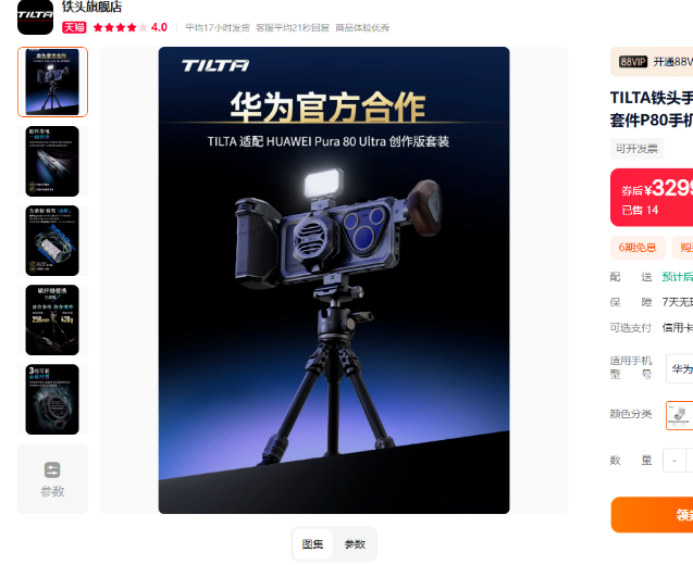 6月30日消息,华为和铁头TILTA公司合作了一款Pura 80 Ultra影像创作套装,现已开售,售价3299元。