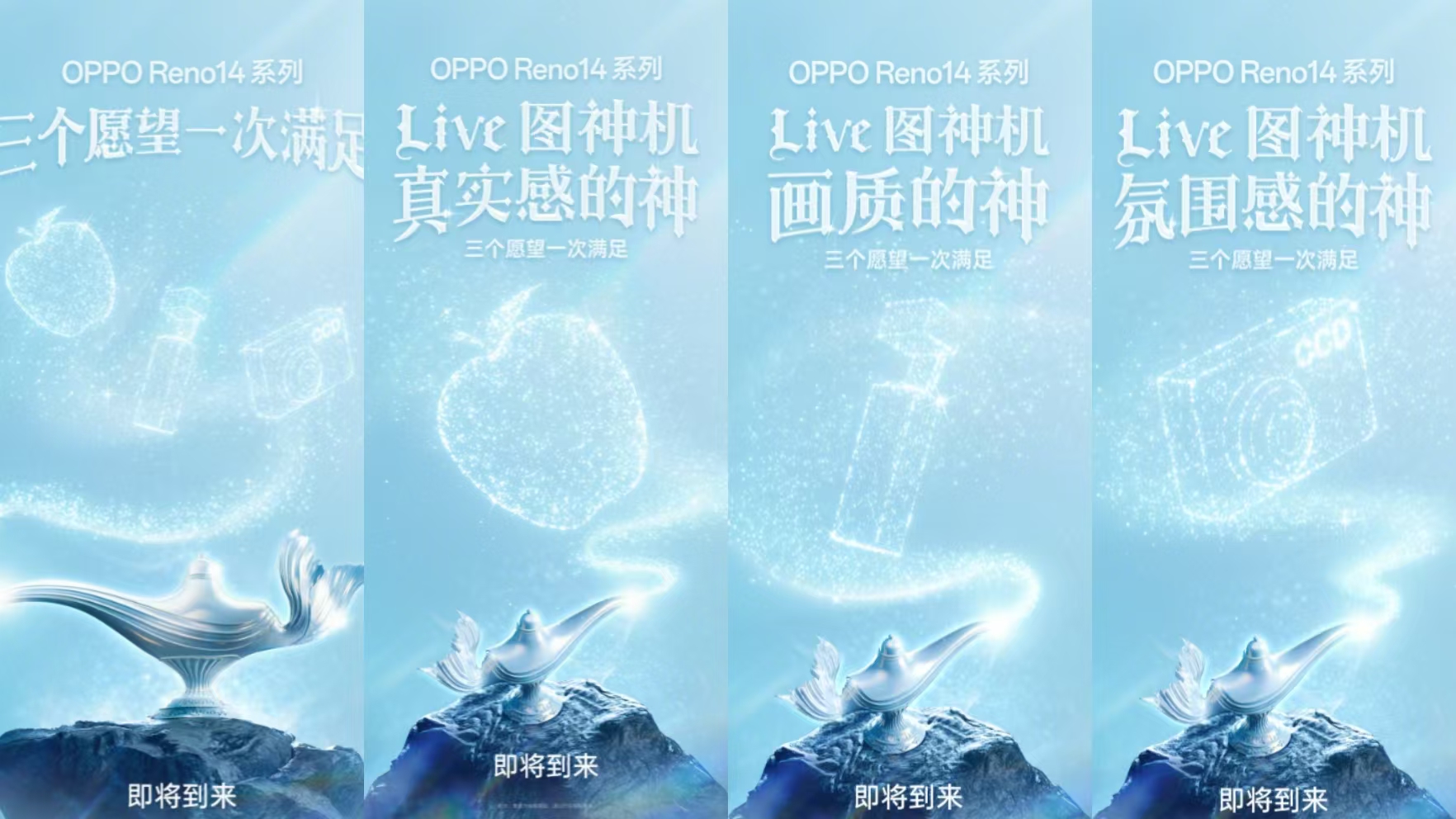 OPPO官方今天发文公布了OPPO Reno14系列海报,官方称其为“Live图神机,三个愿望一次满足”,据了解,该机型将于5月15日在珠海正式发布。