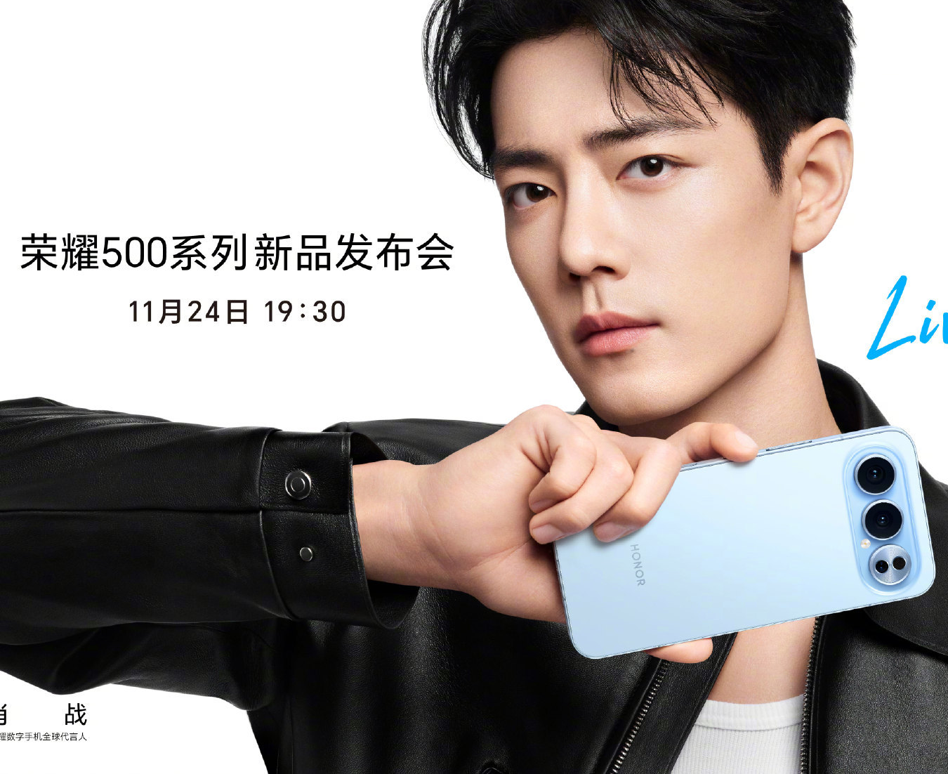 2025年11月17日,荣耀官微官宣,荣耀500系列新品发布会“2亿人像Live实况之夜”定档11月24日19:30,肖战出任全球代言人。目前,荣耀500系列已开启预约。