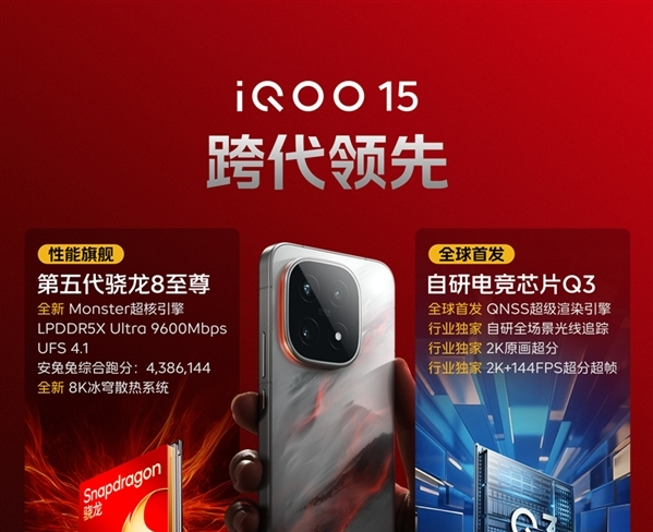 10月20日,vivo旗下子品牌iQOO正式召开新品发布会,年度旗舰iQOO 15系列亮相,首发12GB+256GB版本售价4199元起。