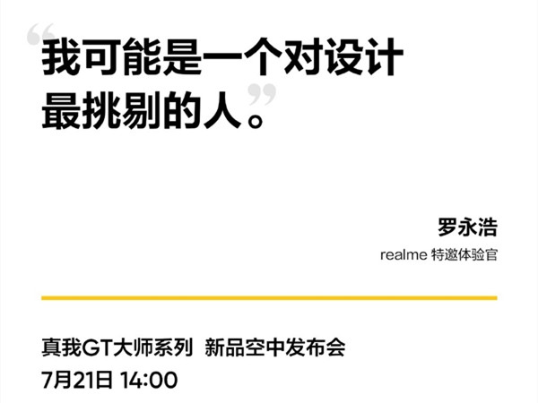 众所周知,罗永浩作为一个曾经的手机产品经理,对手机的设计要求一直都十分苛刻,连他自己都说“我可能是一个对设计最挑剔的人”,而此次为realme GT大师系列站台,也意味着罗永浩本人对该机的认可,体现了该机在设计方面的出众表现。