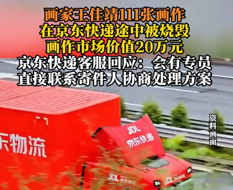 近日,艺术家王家靖发文称,自己111张画作在京东快递运输途中被烧毁,其中包含两张意大利艺术展金奖作品。