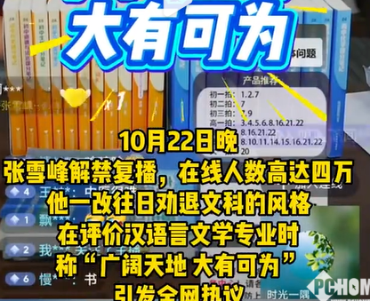 近日,峰学蔚来创始人、研途考研VIP名师、微博知名教育博主张雪峰账号解封后首播,用小号直播连麦,直播间同时在线人数达到4万人,直播时风格大变,称文科专业“大有可为”。