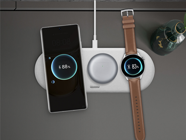 华为多设备智能无线充电板,可为华为手机、平板、耳机、智能手表等支持无线充电的设备提供最大15W的无线充电功率。同时,可为支持Qi协议的其他品牌设备提供无线快充。
