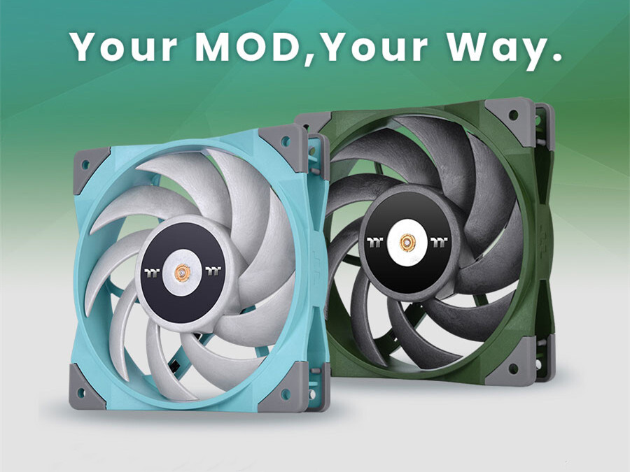 近日Thermaltake发布了全新的钢影TOUGHFAN 12高风压风扇,也采用了竞赛绿和松石绿配色,让玩家可以实现“炫彩电竞,大胆玩色”的精神。