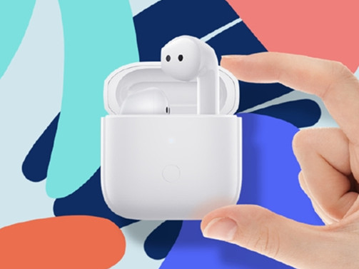 从预热海报来看,Redmi Buds 3采用苹果AirPods的设计,半入耳设计,而且装电池棒的小尾巴与耳机主体衔接非常自然。