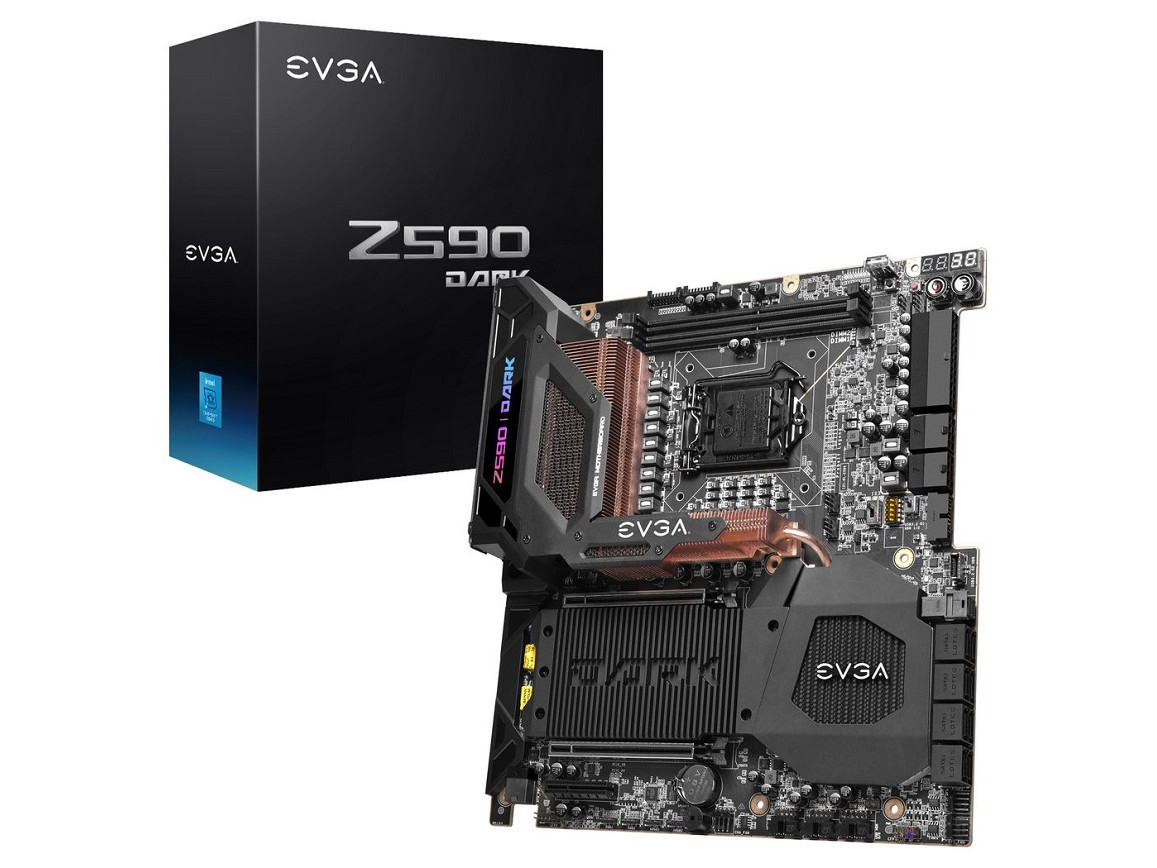 近日,EVGA正式发布了Z590 DARK。这款基于英特尔Z590芯片组的旗舰产品属于E-ATX规格,采用了10层PCB以及21相VRM,供电VRM以及芯片组上都有大面积的散热鳍片辅助,之间还有铜管相连,M.2 SSD区域也是有大面积的散热结构。