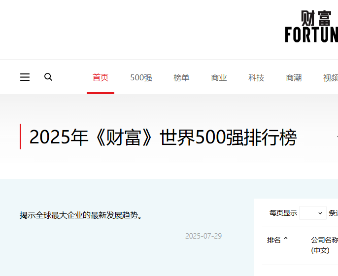 7月29日,2025年《财富》世界500强排行榜正式发布。尽管全球经济增速放缓,但500强企业总营收仍创下41.7万亿美元的新高,相当于全球GDP的三分之一以上。