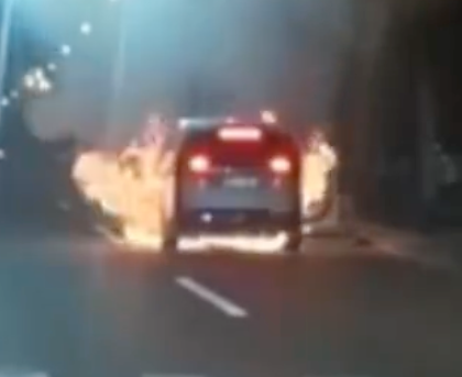 该理想MEGA在平滑路面正常行驶,没有发生任何底盘磕碰,但车底却突然发生爆炸,并涌现火苗,短短10秒钟内,汽车就燃起了熊熊大火,主驾和副驾赶忙从车上逃了出来,一人随后还想从车上拿东西,但因火势太大没有成功。