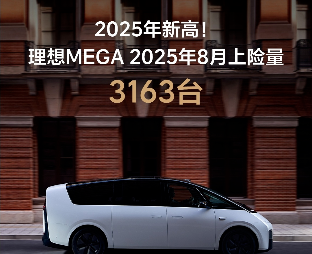 9月19日,根据最新发布的上险量数据,理想汽车旗下高端MPV车型MEGA在2025年8月实现上险量3163台,连续三个月蝉联50万元以上MPV市场及50万元以上纯电车型销量双冠军。