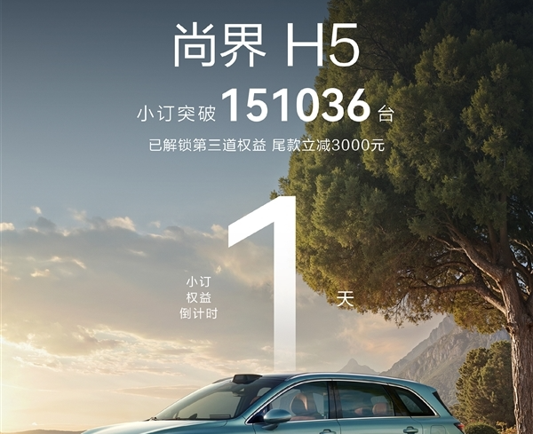 尚界汽车官宣,尚界H5小订突破11万台,达116900台,已解锁2000元专属现金权益,订单量超15万将解锁3000元现金权益。