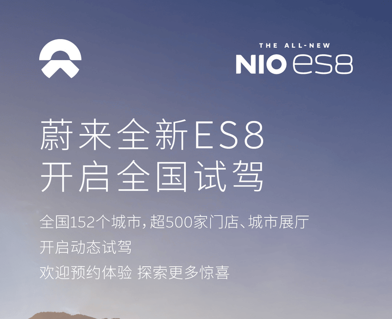 9月10日,蔚来汽车宣布,全新ES8自即日起开启全国试驾。已于8月21日开启预售,提供六座与七座版本,整车购买预售价区间41.68-45.68万元,电池租用方案起售价为30.88万元,新车将于9月20日正式上市并同步交付。