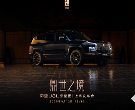 9月4日,比亚迪旗下仰望汽车官方发文宣布,U8L鼎世版上市发布会将于9月12日19:30举行,预售价为130万元。