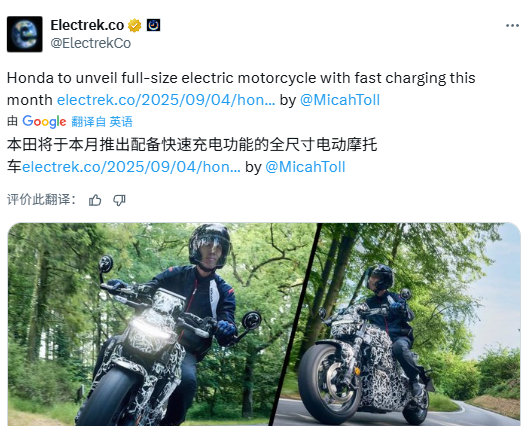 9月4日,汽车媒体electrek发文称,本田将于9月16日发布首款全尺寸电动摩托车,支持直流快充技术。该公司之前曾描述新车型的续航里程足以满足城市使用,“超过100公里”,自行车的预告图片也清楚地展示了CCS Combo 2充电端口,该端口在欧洲用于快速充电,但目前尚未提供可靠的电池容量信息。