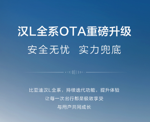 8月1日,比亚迪宣布将对旗下汉L车型进行全系OTA重磅升级,此次升级新增10项功能,优化11项体验,为用户带来诸多实用新功能。