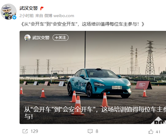 7月29日,武汉交警官方今日发布文章表示,从“会开车”到“会安全开车”,小米的驾驶培训,值得每位车主参与。