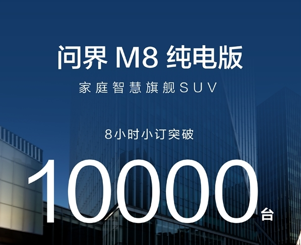 7月26日,昨日问界M8纯电版开启预订,预售价37.8万元起。数据显示,该车开启预定8小时小订单量就突破了10000台,取得了非常不错的成绩。
