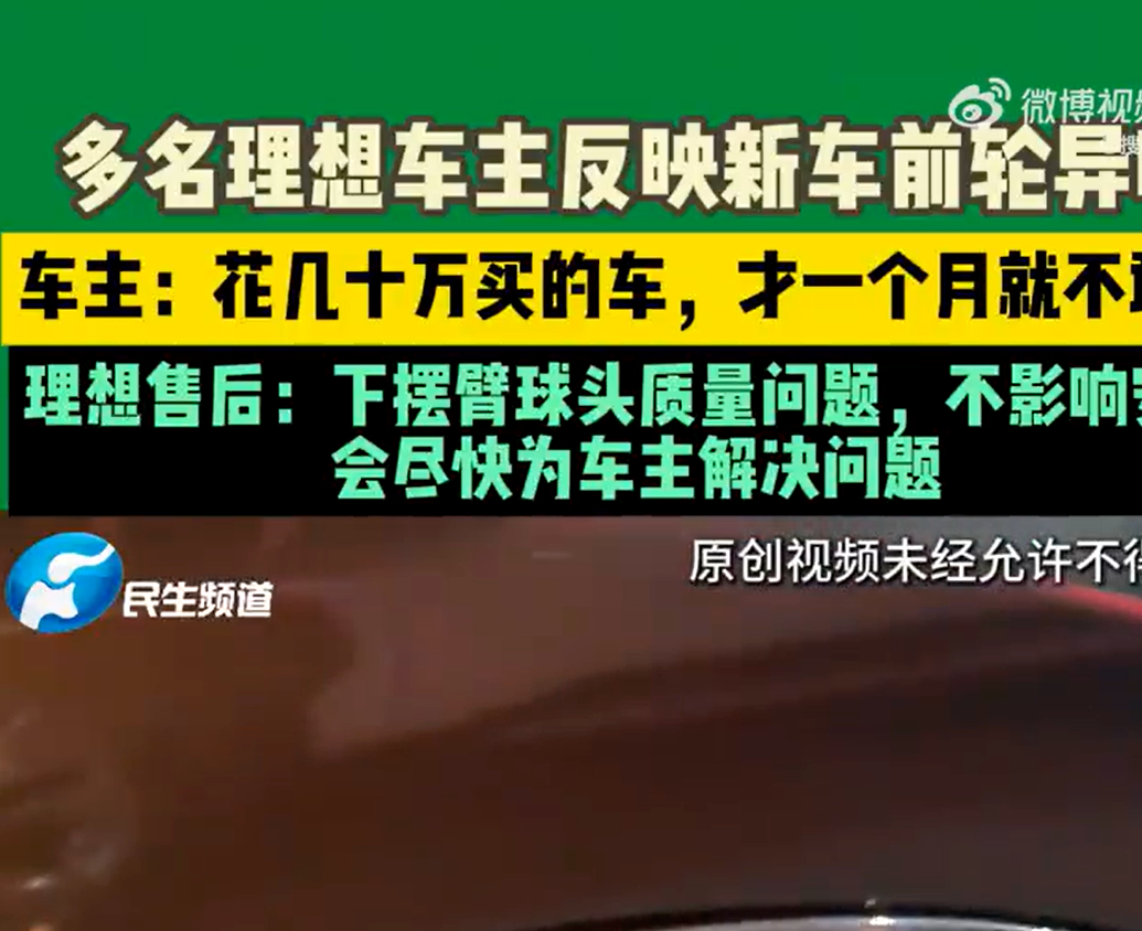 7月27日,近日,据河南民生频道报道,多名车主反映,2025款理想L6、L7、L8、L9智能焕新版车型等多款车型,在提车后不久便出现异响问题。据车主描述,异响多出现于刹车或转向时,部分车辆在颠簸路段会伴随轻微震动。