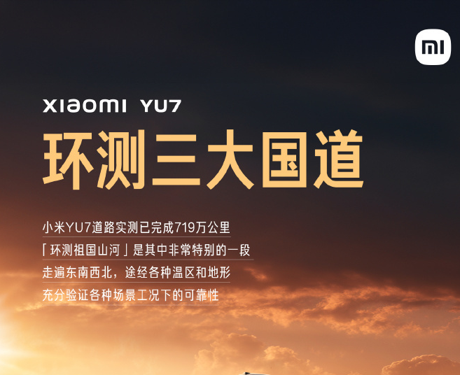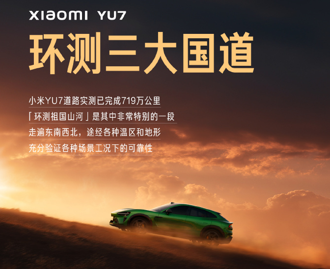 2025年7月24日消息,小米汽车官方宣布,小米YU7路测团队已经完成贯穿G228、G219、G331三条国道,719万公里道路实测,完成了各种极端路况场景测试。