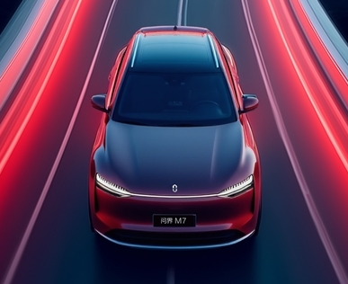全新问界M7采用与问界M9、M8同款设计语言 ,简洁流畅的车身轮廓、犀利的灯组造型,营造出强烈的家族化风格与未来感。城市夜景背景下,新车融合科技与美学,展现出对高端智能汽车设计的新诠释。