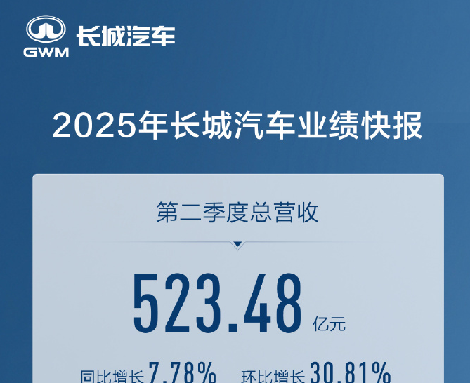 7月22日,长城汽车官方在今日公布了其第二季度的营收情况,官方称之为历史最佳第二季度。