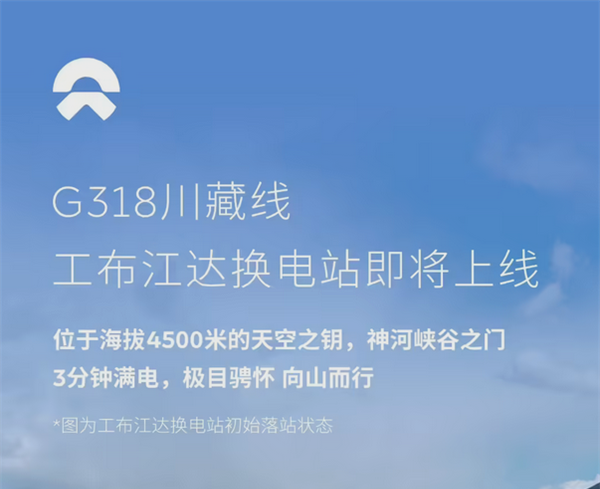 7月22日,蔚来汽车在海拔4500米的西藏工布江达县建成全球海拔最高的换电站。