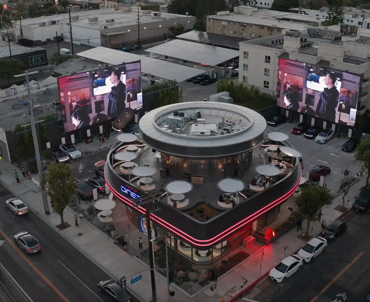 特斯拉历时七年打造的超级充电站餐厅(Supercharger Diner)在洛杉矶圣莫尼卡大道正式开业。