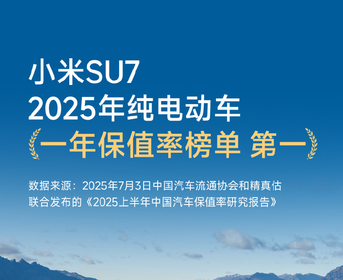 7月21日,小米汽车官方今日发文称,中国汽车流通协会和精真估联合发布的《2025上半年中国汽车保值率研究报告》显示,小米SU7一年保值率88.91%,在所有纯电车型中排名第一。