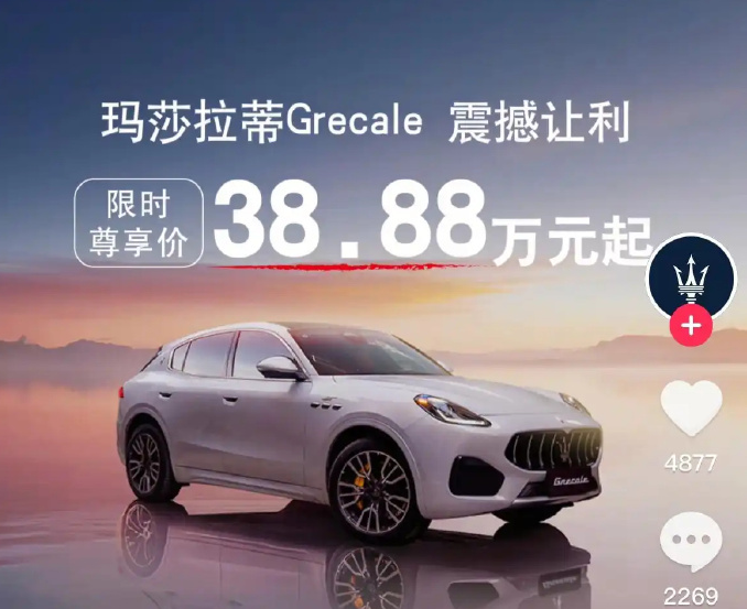 近日,名为“上海浦东玛莎拉蒂”的账号发布海报称,玛莎拉蒂的SUV车型Grecale限时尊享价38.88万元起,活动时间截止到9月30日。官方信息显示,玛莎拉蒂Grecale的指导价为65.08-103.88万元。