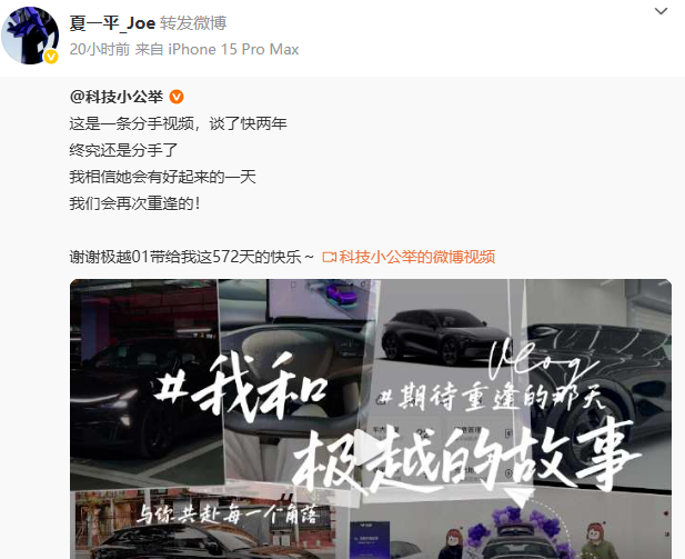 集度CEO、极越CEO夏一平昨日突然转发两条微博,网友纷纷猜测,这会不会是极越即将资产重组的信号。