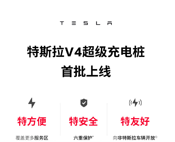 6月30日消息,特斯拉官宣,特斯拉 V4 超级充电桩首批上线,覆盖更多服务区,防雨防水等六重保护,同步向非特斯拉车辆开放,其他品牌车辆也能充。