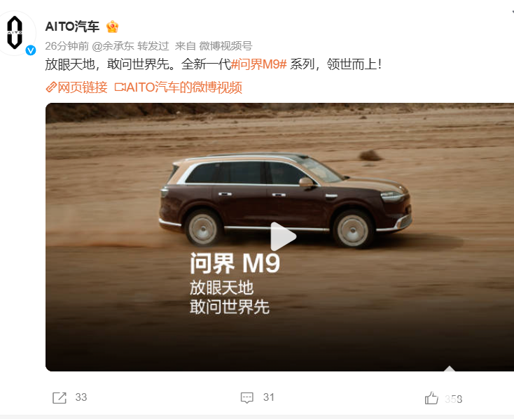 PChome 4月13日消息,今日,AITO汽车正式官宣全新一代问界M9,其首搭六激光雷达与全主动悬架,展示车身尺寸、动力系统全面升级。