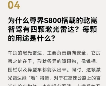6月10日消息,华为乾崑智能汽车解决方案团队近日与网友进行互动,回应了公众关注的多个问题。其中,官方回应了为何尊界S800要装四颗激光雷达。