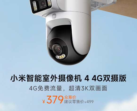 2026年1月28日,小米智能室外摄像机4 4G双摄版在小米商城、小米有品上架,将于2月4日众筹开售,众筹价379元。
