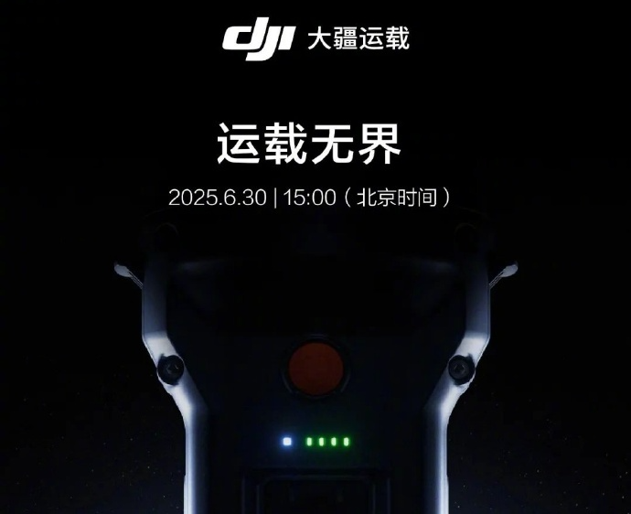 6月24日消息,大疆运载2025新品发布会官宣将于6月30日15:00举行,但并未透露这款新品的身份。