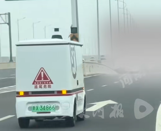 据报道,近日,有网友拍到了一辆无人快递车在郑州上高架的视频,引起关注。视频中,这辆无人快递车身上喷涂有“SF”的logo,车辆闪着双闪灯,在高架匝道口驶下。